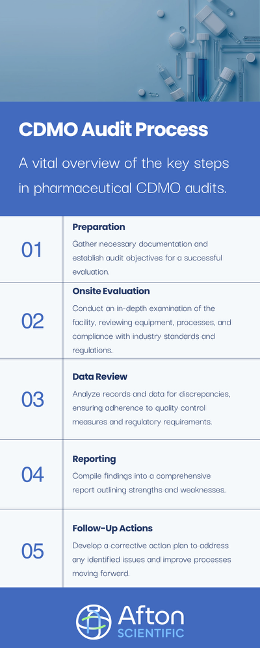 Avoid using the relationship manager to the CDMO as an auditor. They may be biased in their observations based on prior interactions or a reluctance to apply pressure.